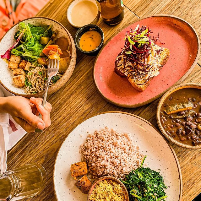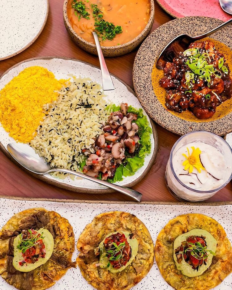 Tem tapioca de Tofu (R$36), tostada de jaca (R$49), feijoada (R$63), moqueca de banana da terra (R$63) e muito mais.