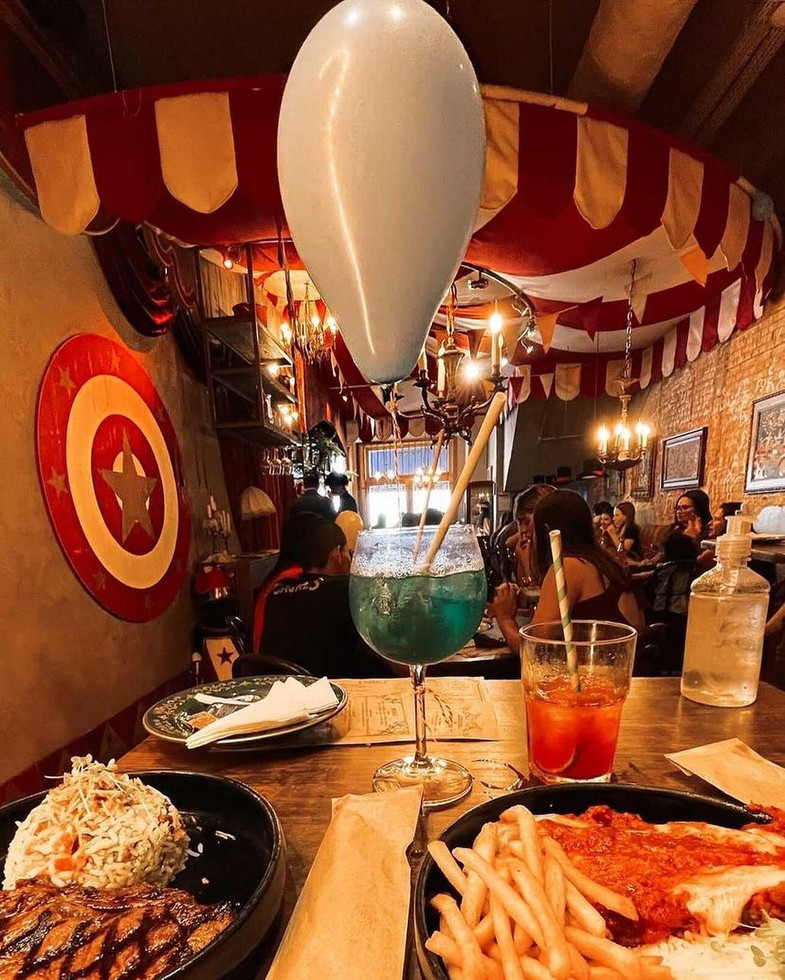 Essa hamburgueria tem temática de circo e a experiência é espetacular. A casa é linda e toda decorada com itens de circo, inclusive o teto do salão é uma tenda gigante.